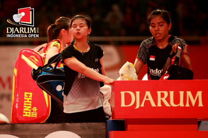 afternoon in indoor are of the stadium. Greysia was not alone, she was