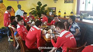 KUNSHAN - Pebulutangkis ganda putra Indonesia Angga Pratama merayakan hari ulang tahunnya yang ke-25 di tengah-tengah mengikuti turnamen Piala Thomas...