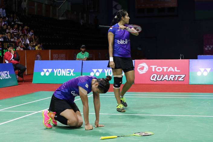 Namun Greysia/Nitya sempat mendekat mencoba mencuri kesempatan, menyamakan kedudukan menjadi 17-17. Setelah itu mereka terus bersaing berebut angka secara bergantian. Sayang akhirnya, mereka tak mampu menyempurnakan kemenangan. Greysia/Nitya kalah tipis 21-23.