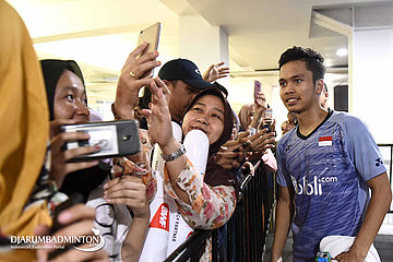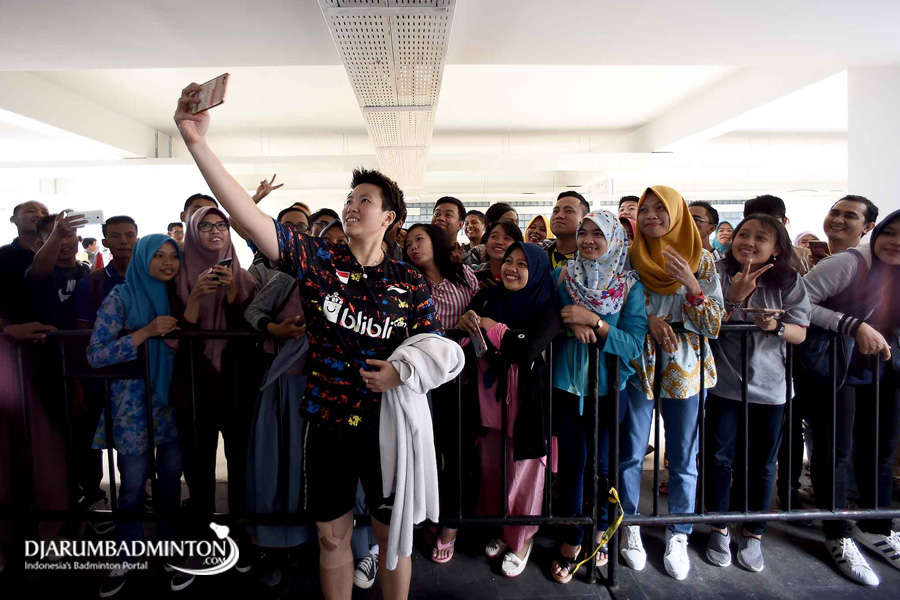 Anthony Sinisuka Ginting (Indonesia) Berfoto Bersama Beberapa Penggemarnya
