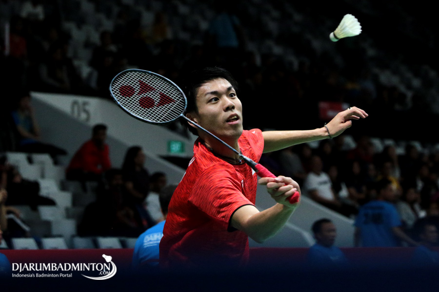 Kazumasa Sakai (Jepang) Mengembalikan Shuttlecock