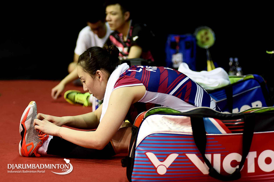 Lee So Hee (Korea) Melakukan Pendinginan Usai Bertanding