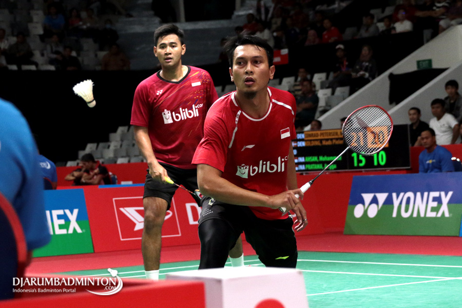 Mohammad Ahsan/Angga Pratama (Indonesia) Menyambut Pengembalian