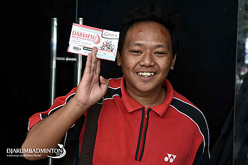 Seorang Pengunjung Memamerkan Tiket Daihatsu Indonesia Masters 2018