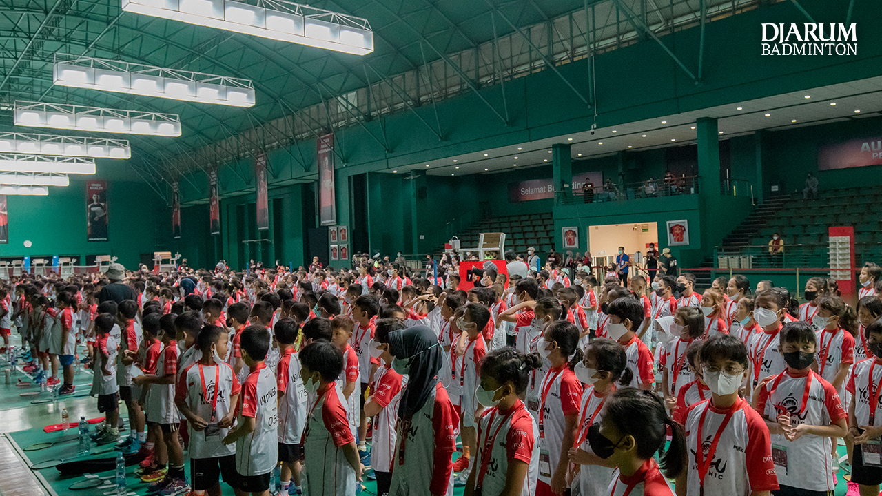 Salah satu peserta Audisi Umum PB Djarum 2022 berkumpul dilapangan