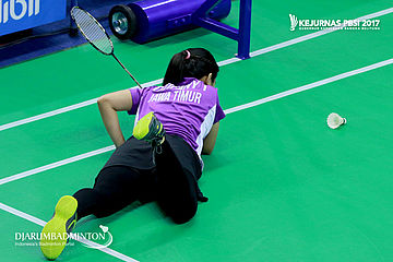 Titifany Ilahi (Jawa Timur) Terjatuh Saat Berusaha Menggapai Shuttlecock