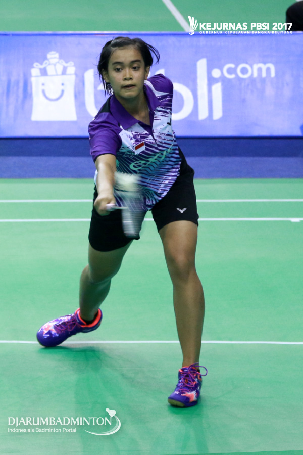 Intan Tri Novianti Syaadah (Jawa Barat) Berusaha Menggapai Shuttlecock