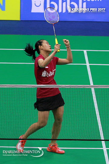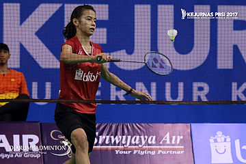 Dinar Dyah Ayustine (Jawa Tengah) Mengembalikan Shuttlecock