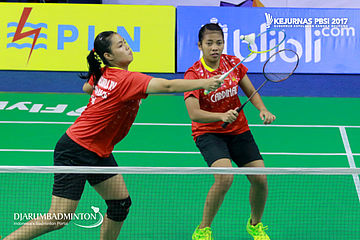 Tania Oktaviani Kusumah/Vania Arianti Sukoco (Jawa Tengah) Melakukan Smash