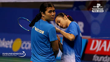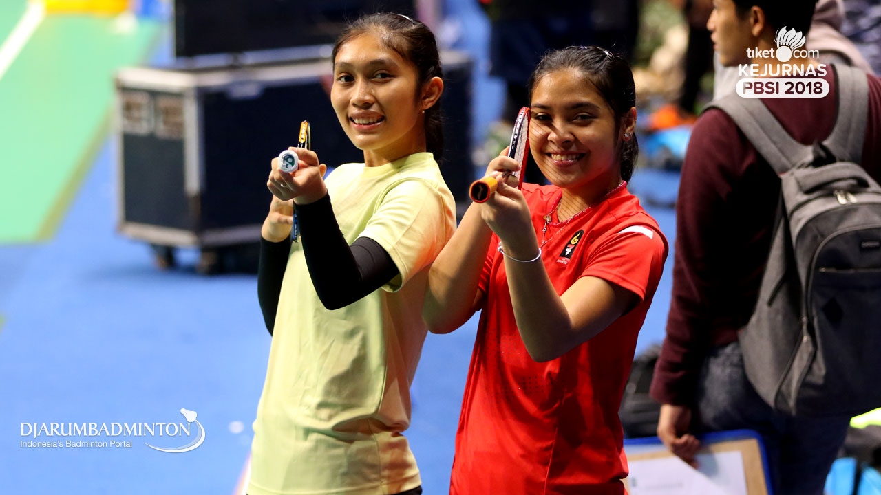 Choirunnisa dan Gregoria Mariska T (Mutiara Cardinal Bandung) Berpose saat sesi latihan.
