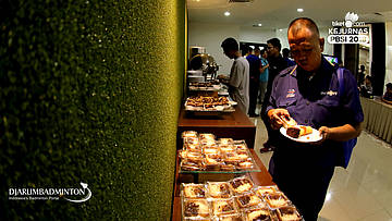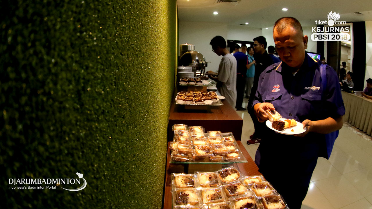 Para wartawan saat menyantap makan siang pada acara konferensi pers.