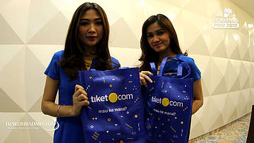 Dua usher saat menjaga meja registrasi Konferensi Pers.