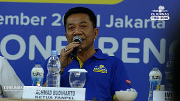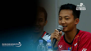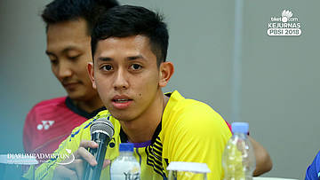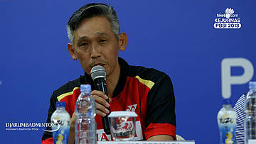 Fung Permadi (Manager Team PB Djarum) Menjawab pertanyaan wartawan.