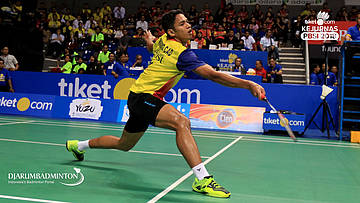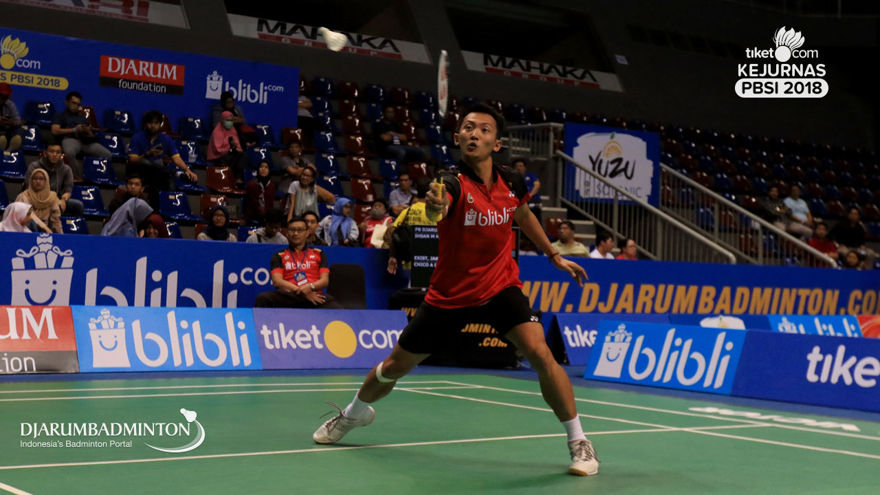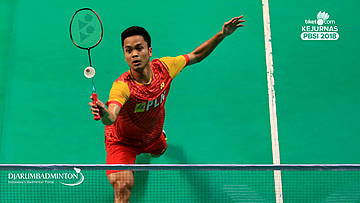 Anthony Sinisuka Ginting (SGS PLN Bandung) menahan serangan