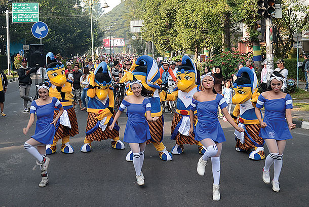 Setelah itu, mereka langsung menaiki Bandros (Bandung Tour of The Bus) yang didatangkan langsung dari Bandung pada, Minggu (21/8) malam. Kemudian mereka langsung diarak menuju jalanan padat Kota Jakarta mulai dari keluar tol bandara, Slipi, memasuki kawasan Senayan, lalu diputar lagi menuju Jl. Jendral Sudirman, naik ke Jembatan Semanggi, melipir ke Jl. Gatot Subroto dan selesai di depan Kantor Kemenpora.