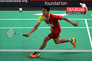(Banjarmasin, 23/2/16) - Wisnu Yuli Prasetyo atlet binaan PB Djarum yang merupakan unggulan pertama tunggal dewasa putra pada Djarum Sirkuit Nasional...