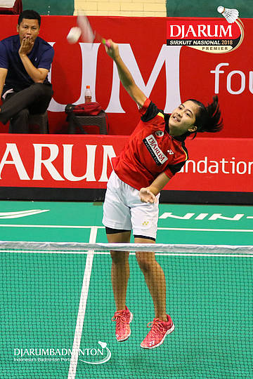 Irdina Naurah Mirza (PB Djarum, Kudus) melepaskan serangan