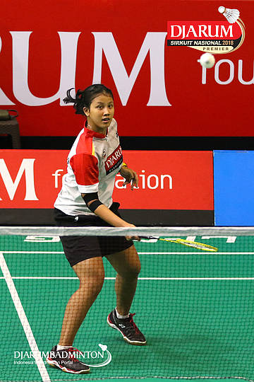 Aisha Galuh Maheswari (PB Djarum, Kudus) mengembalikan serangan