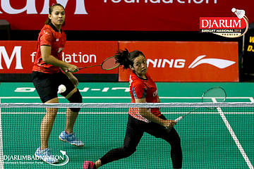 Maretha Dea Giovani/Masita Mahmudin (Mutiara Cardinal, Bandung+Jaya Raya Jakarta, Jakpus) mengembalikan serangan