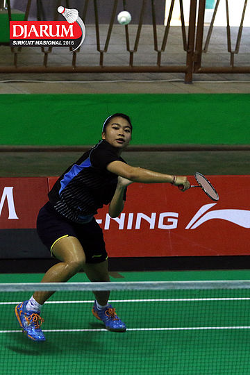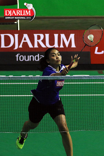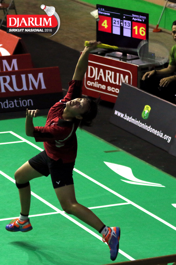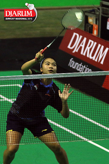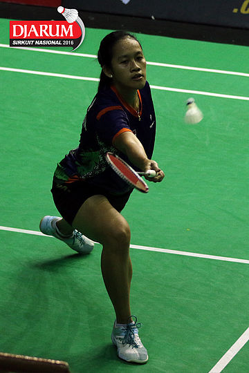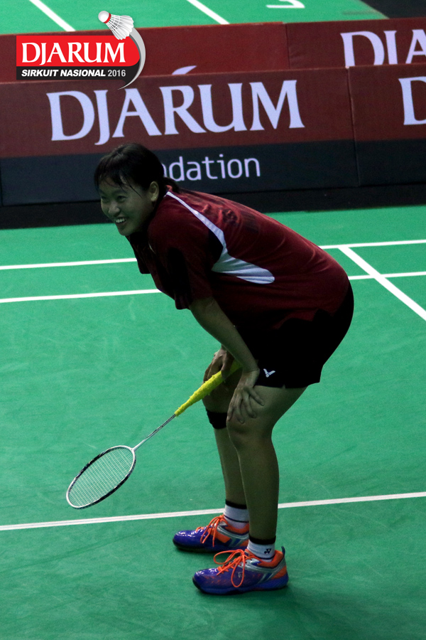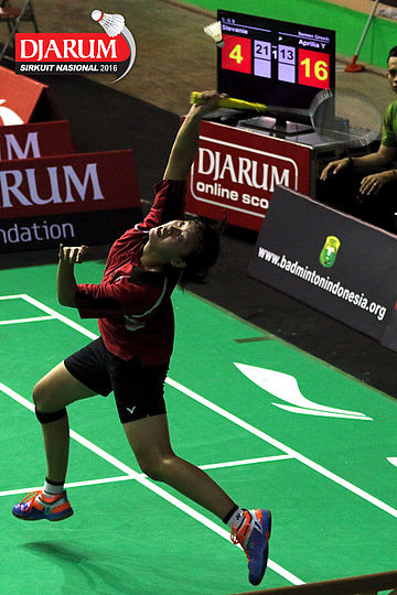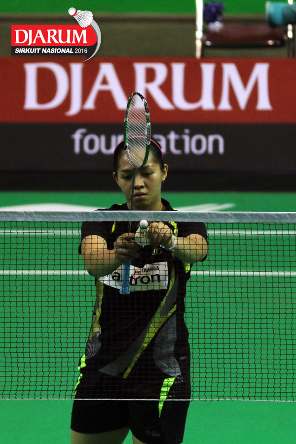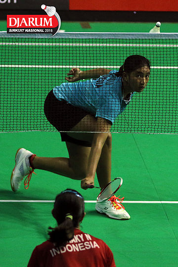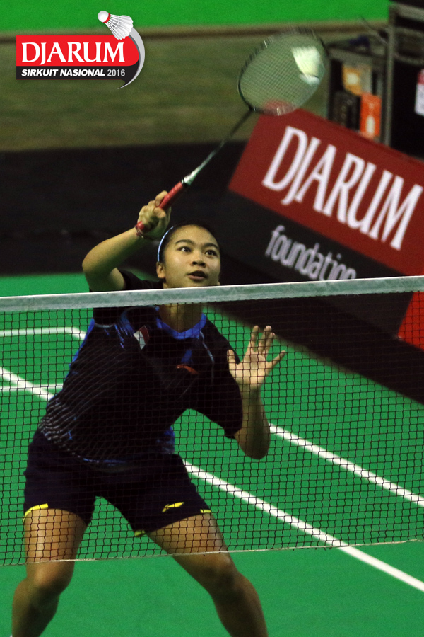 Aprilia Yuswandari (Semen Gresik) mengembalikan shuttlecock
