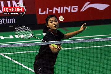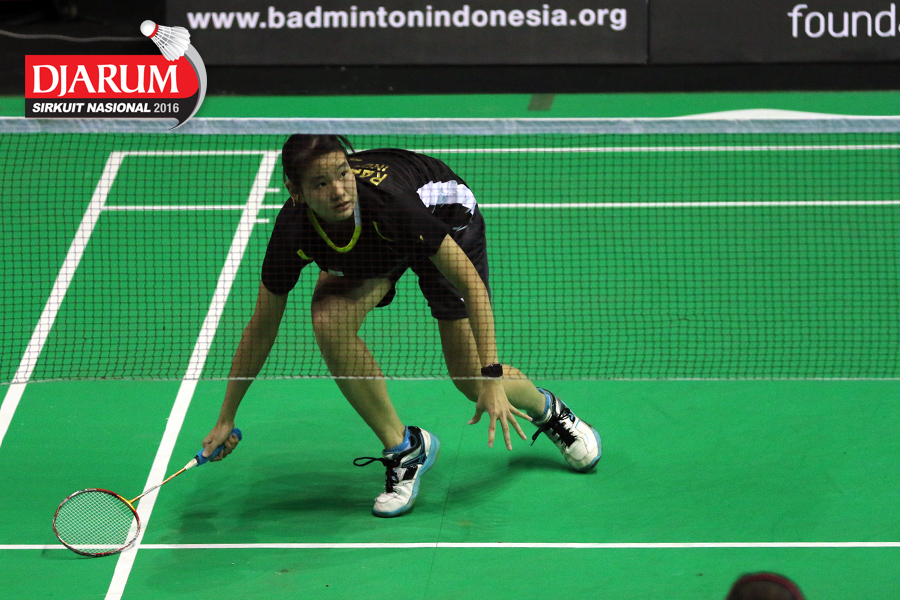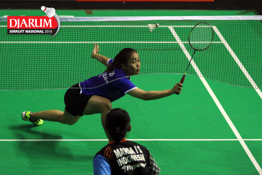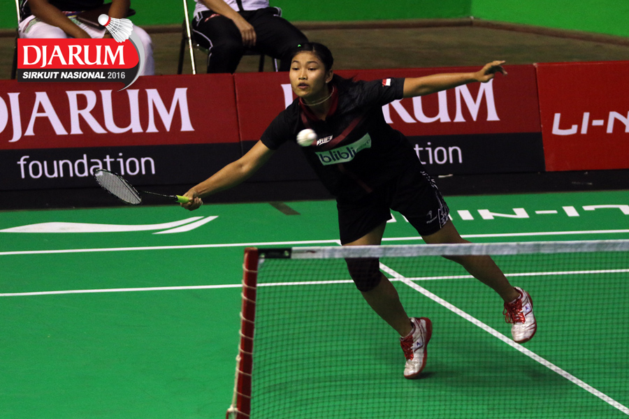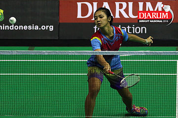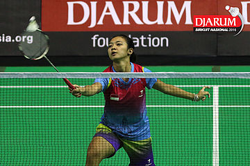 Intan Dwi Jayanti (Djarum Kudus) menghadang serangan