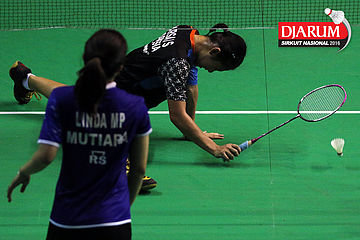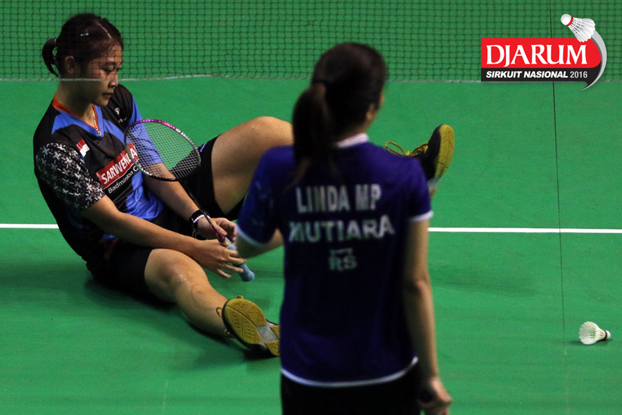 Linda Mutiara (Mutiara Cardinal) gagal mengembalikan shuttlecock