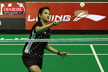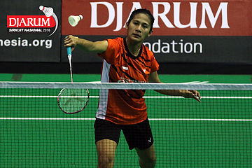 Aprilia Yuswandari (Semen Gresik) mengembalikan shuttlecock