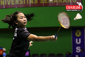 Rian Swastedian/Brigita Marcelia (Jaya Raya) Mengembalikan Shuttlecock.