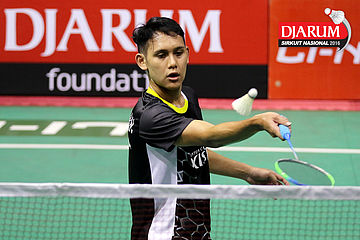Erick Eriawan (Djarum Kudus) Mengembalikan Shuttlecock.