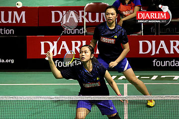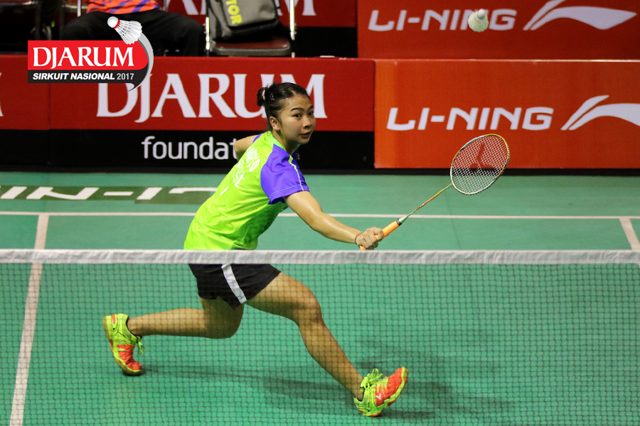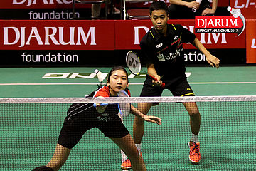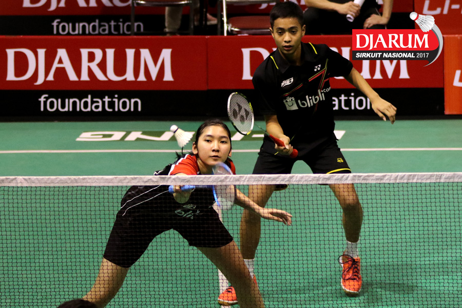 Rahmat Hidayat/Shelandry Vyola (Djarum Kudus) Mengembalikan Shuttlecock