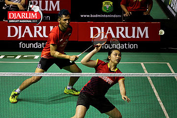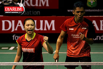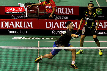 Rizko Asuro/Nadiya Melati (Pertamina Fastron) Mengembalikan Shuttlecock