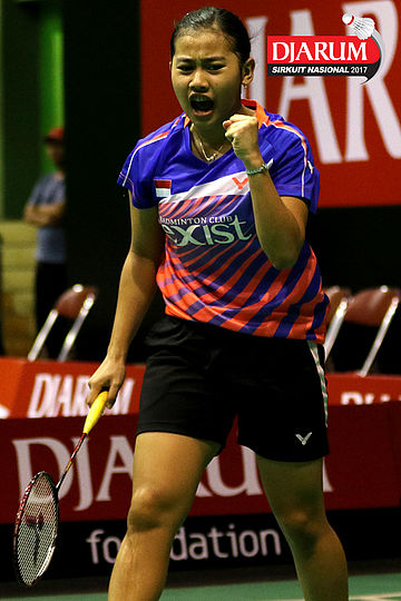 Tri Kusuma Wardhana/Suci Rizki Andini (Berkat Abadi/Mutiara Cardinal) Mengembalikan Shuttlecock