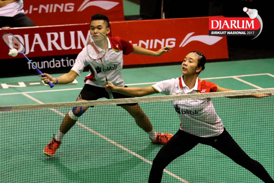 Leo Rollycarnando/Metya Inayah Cindiani (Djarum Kudus) Mengembalikan Shuttlecock