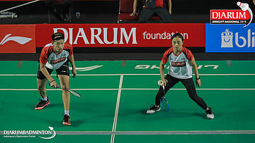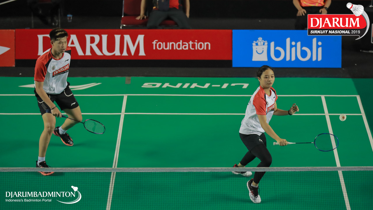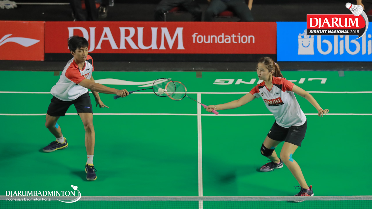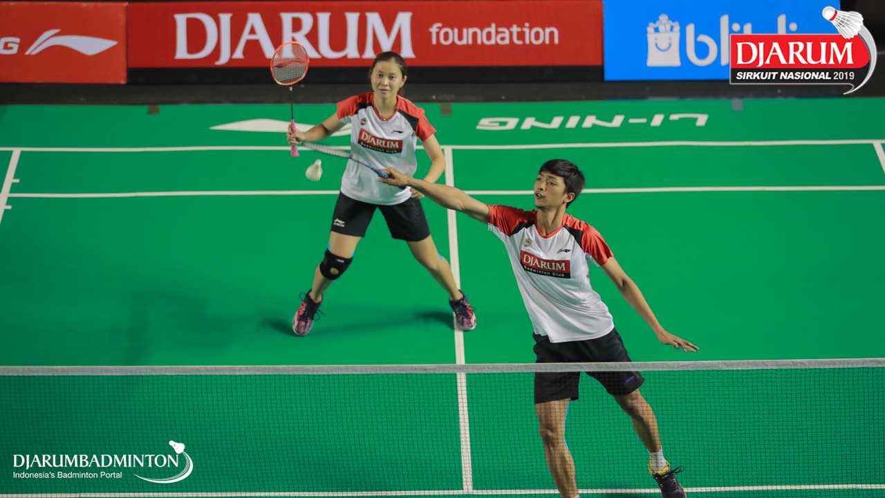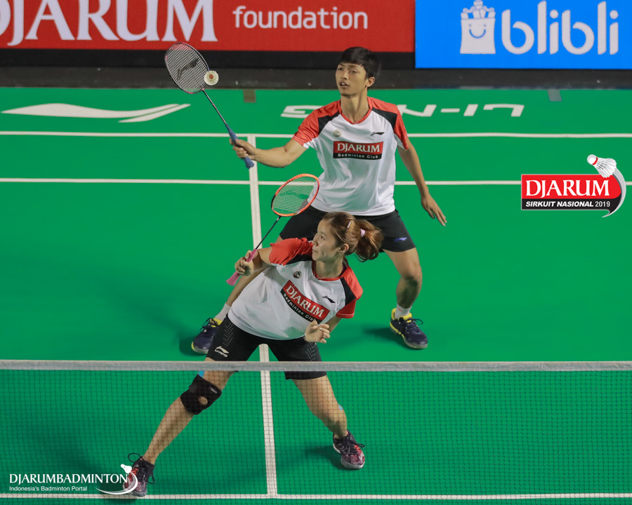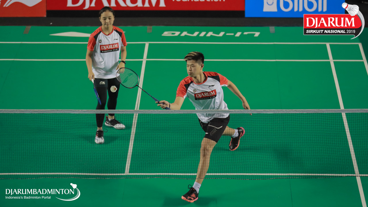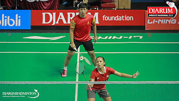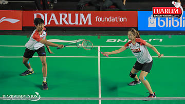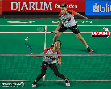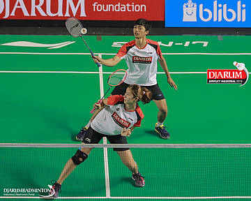 Ivan Adi Cahyono+Salli Lin (PB Djarum, Kudus) bersiap menyambut shuttlecock