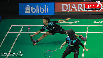 Ivan Adi Cahyono+Salli Lin (PB Djarum, Kudus) menyambar pengembalian