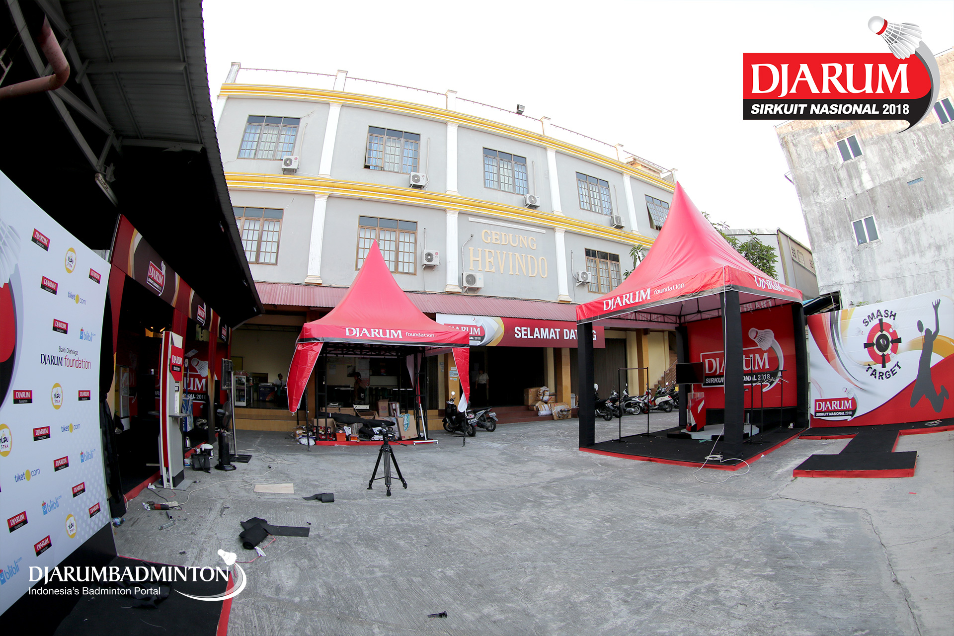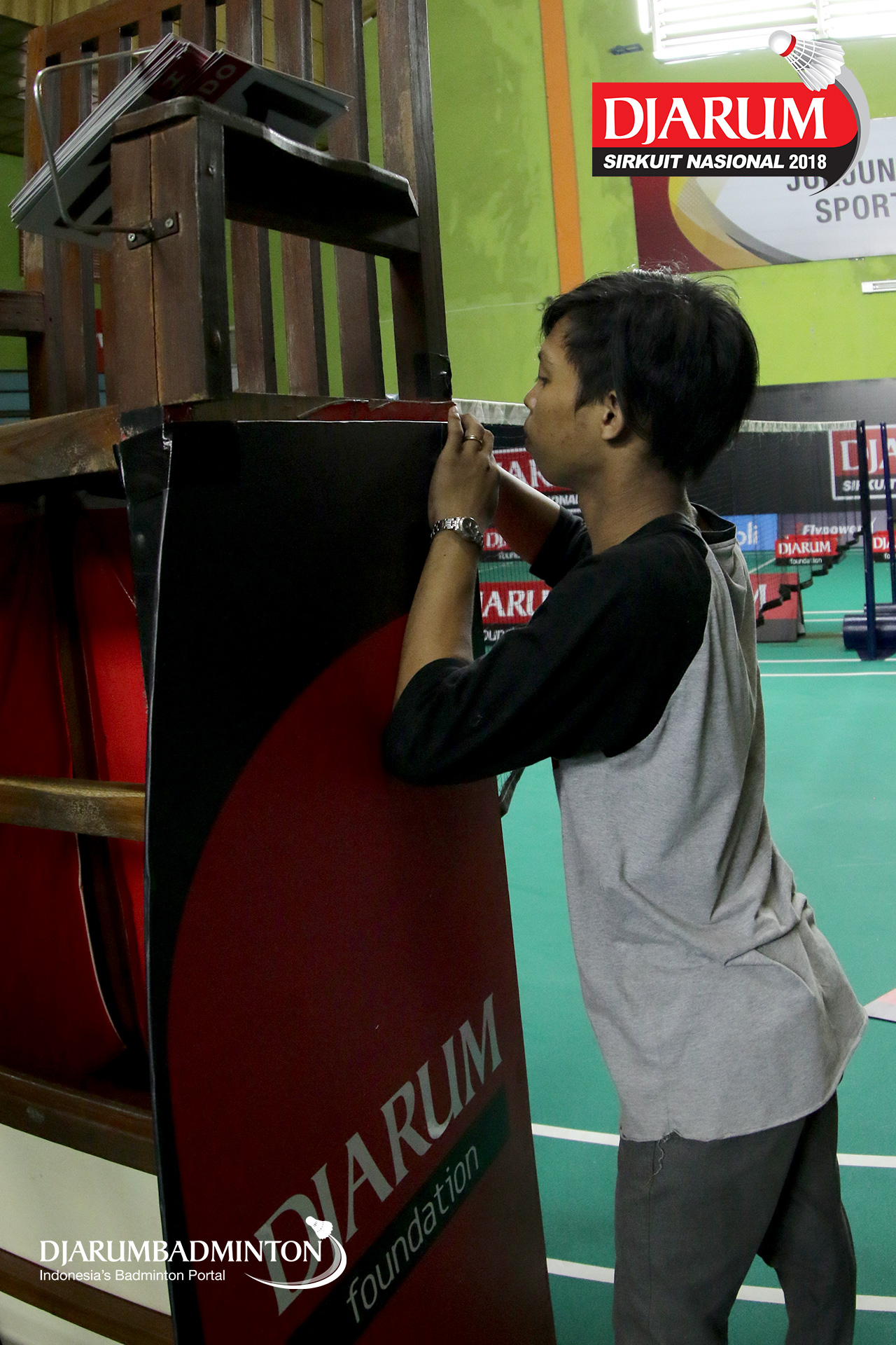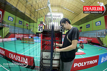 Suasana persiapan Djarum Sirkuit Nasional Kalimantan Timur Open 2018 di GOR Hervindo, Balikpapan