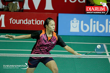 Novia Rahmawati (PB BINTANG SOLIBAD INDONESIA) mengembalikan shuttlecock