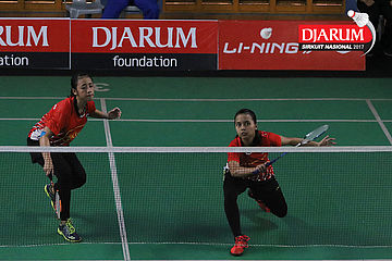 Syarifah Nurmariam/Windi Siti Mulyani (Victory Bogor) Mengembalikan Shuttlecock