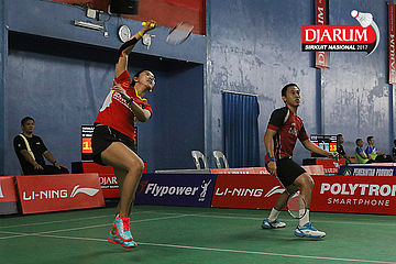 Tedi Supriadi/Devi Tika Permatasari (Djarum Kudus/Berkat Abadi Banjarmasin) Bersiap Melakukan Smash