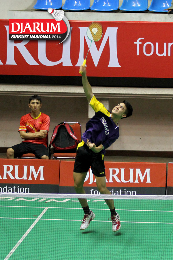 Dea Adi Rangga (SARWENDAH BADMINTON) berusaha menggapai shuttlecock