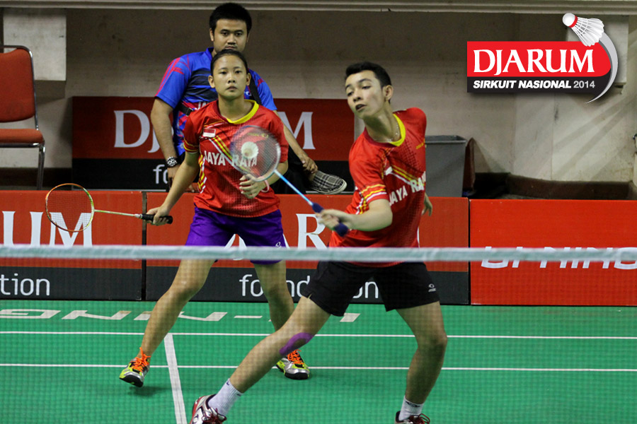 Alfandy Rizky P/Phita Haningtyas M (JAYARAYA JAKARTA) mengembalikan shuttlecock ke arah Haikal Afrizal/Karina Ria H (PUSDIKLAT HAVINDO)