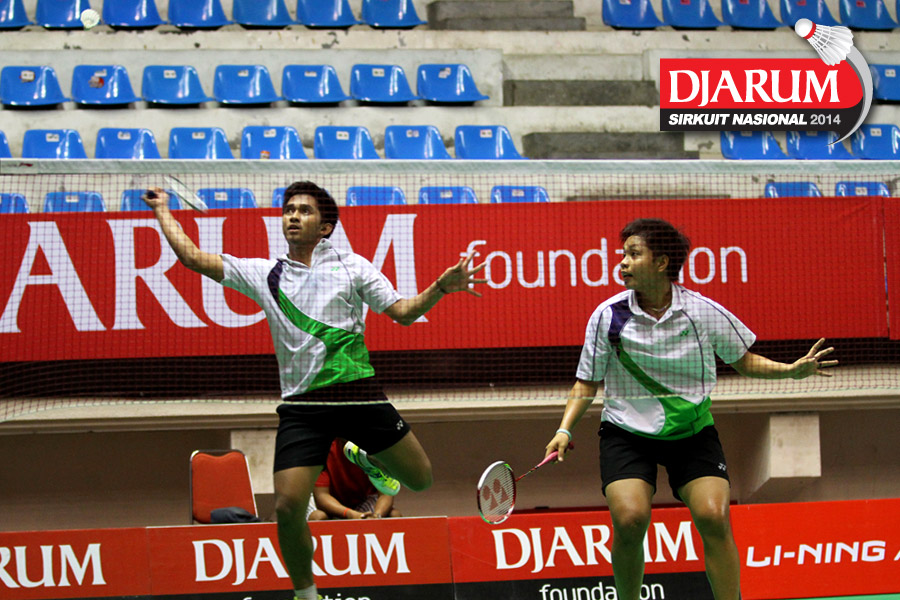Yantoni Edy S/Marsheilla Gischa Islami (DJARUM KUDUS) menahan serangan Fauzi Habibi/Apriani Rahayu (PELATPROV DKI JAKARTA)