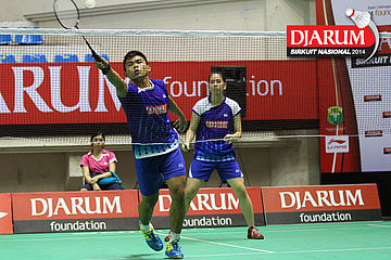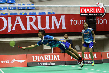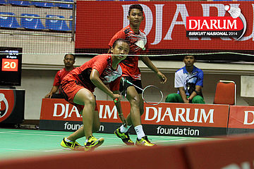 Aji Firmansyah/Bunga Fitriani (MUTIARA CARDINAL) bekerja keras menahan serangan Yahya Adi Kumara/Cynthia Shara A (DJARUM KUDUS)