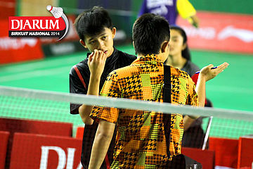 Tri Cahyo (PB Djarum) saat mendapatkan pengarahan dari pelatih