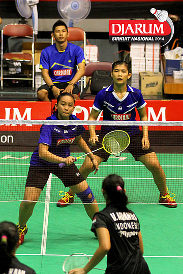 Dianita Saraswati/Yulfira Barkah (Mutiara Bandung) bersiap menyambut pengembalian dari Senera Kani/Vania Arianti (PB Djarum).
