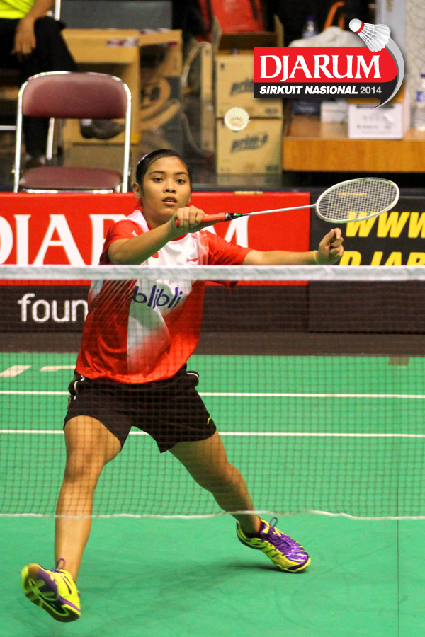 Gregoria Mariska (Pelatnas) bersiap menyambut pengembalian dari Ana Rovita (PB Djarum).