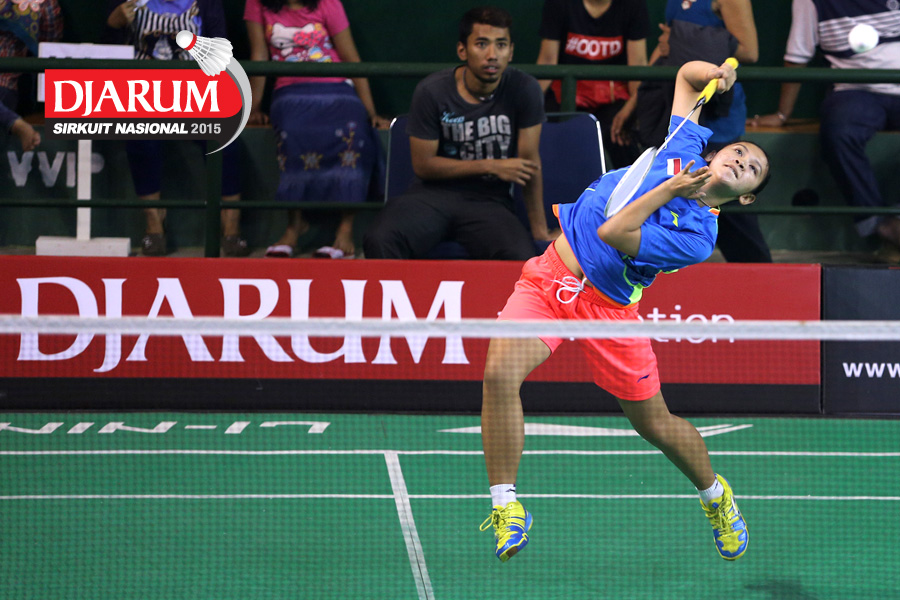 Made Deya Surya Saraswati (Pelatprov Bali) mengembalikan shuttlecock.