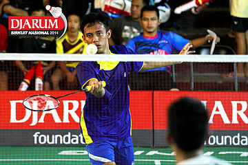 Krishna Adi (Jaya Raya Suryanaga) bersiap menyambut pengembalian dari Rizky Ariandy (Pelatprov PBSI DKI Jakarta)