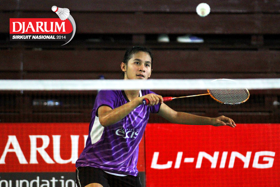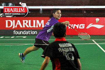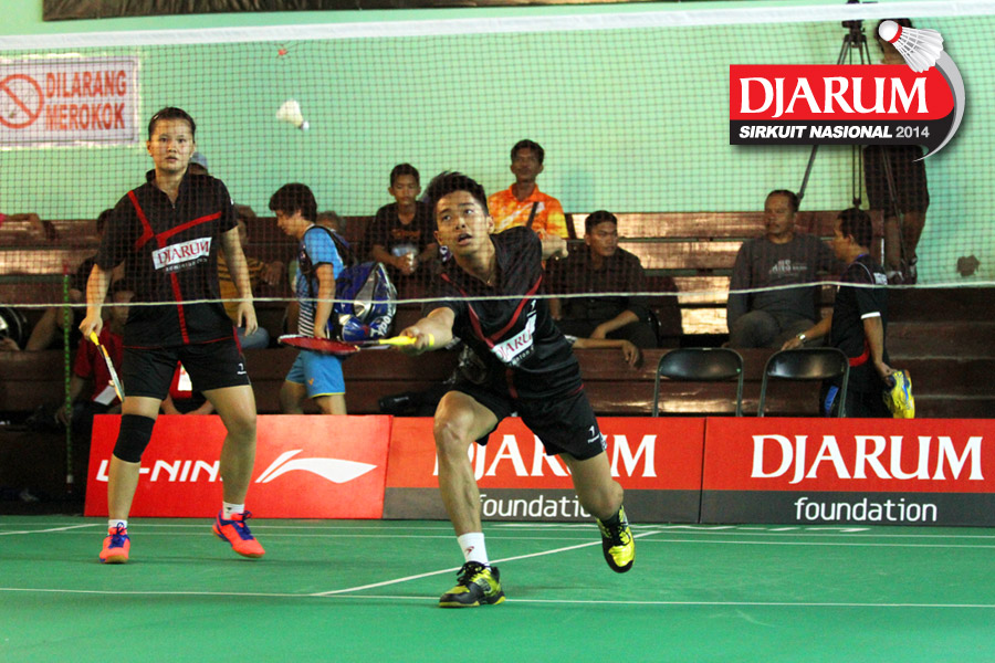 Ricky Alverino/Komala Dewi (PB Djarum) mengembalikan shuttlecock ke arah M. Ilyas/Yeni (Mustika Banjar Baru)