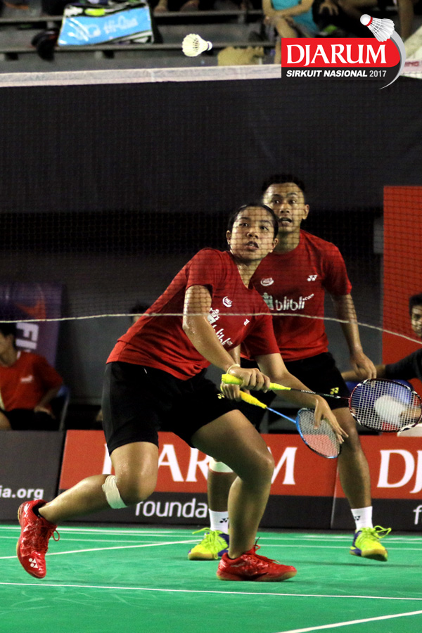 Fiesal Wiranto/Annisya Widya Permatasari (SGS PLN/Mutiara Cardinal) Menghadang Serangan
